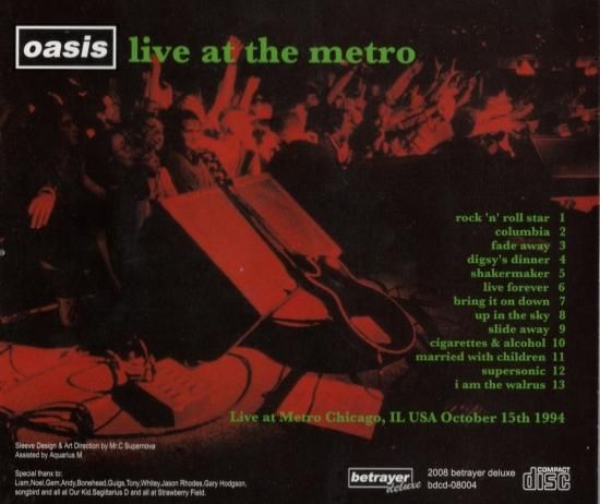 94年初の北米ツアー(7月に1公演だけニューヨークでライヴを行なっています)から、10月15日のシカゴのクラブ、メトロでのライヴが久々に登場!!当時のアメリカでの配給元EPICが正式にレコーディングしたサウンドボード音源だけに音質はオフィシャル並みに極上で、誰もが楽しめるものとなっています。限定200セットには、同公演をこれまた正式にシューティングされたPRO-SHOT映像を収録したDVD-R付!!画質はまずまずのレベルながら、メジャー・デビュー後のライヴを完全収録した94年のPRO-SHOT映像は珍しく、お薦めの映像です。 この時の北米ツアーは、04年にリリースされた『Definitely Maybe DVD』でも触れられていますが、途中ノエルが9月29日のライヴ終了後に失踪するというハプニングがありました。そんな紆余曲折があった北米ツアーですが、このライヴは前日の10月14日に再スタートしています。そして本作に収録されている10月15日のシカゴのクラブ、メトロでのライヴ音源は当時のアメリカでの配給元EPICが正式にレコーディングしたもので、ちろんサウンドボード音源。当時プロモCDが制作され、(当たり前ながら)その質の高さから、それをそのままコピーした多くのタイトルを生み出した定番のマテリアル。リリースされたオフィシャルのアイテムでも先述の『DefinitelyMaybe DVD』に映像が数曲が収録されているほか、オーディエンス・ショット映像が使用された曲にもこの日の音源が被せられており、更には2005年のアルバム『DON'TBELIEVE THE TRUTH』の北米のBEST BUY限定ヴァージョンにはこの公演から数曲をチョイスしたボーナスCDが付属、2006年リリースのベスト・セレクション・アルバム『STOP THE CLOCKS』の限定盤のみのDVDには「Fade Away」の映像が収録されるという、大活躍というよりは、まさに使い倒されている公演と言えます。もちろんそれだけの音質を誇っているからこそ、ここまで使われているわけなのですが、そんな定番のお薦めマテリアルながら近年の入手は容易でなかっただけに、初心者向けのアイテムとしても大推薦の1作です!!!