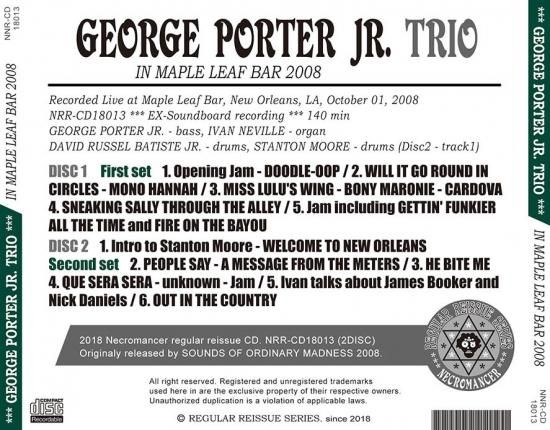 ジョージ・ポーター・ジュニアとは、ニューオリンズ・ファンクを語るうえで最も重要なバンド、アラン・トゥーサンのバックでもお馴染みミーターズのベーシストであります。その彼の率いるトリオの高音質サウンドボード音源です。イヴァン・ネヴィルのオルガンをフィーチュアしておりメンツはミーターズに近いもののレオ・ノセンテリのギターが無い分ややジャズに寄るかもしれません。ゲストでジャムバンド、ギャラクティックのスタントン・ムーアがドラムを叩いているセットも収録。ジャジーでファンキー、まさに音楽の坩堝ニューオリンズに相応しい素晴らしいライヴです。