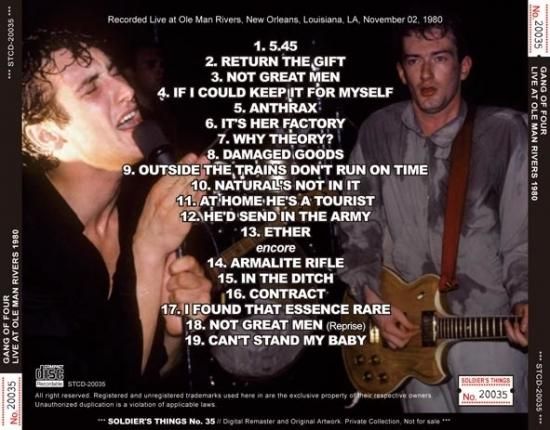 ポストパンクレジェンド、GANG OF FOUR、1980年LAはOLE MAN RIVERSのライヴ超極上AUD音源が初登場。
