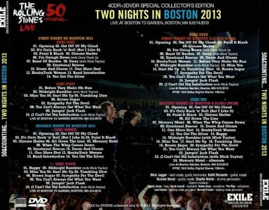 2013年ローリング・ストーンズ”50&COUNTING”ツアーよりボストンからの2公演が音と映像のカップリングによる4CDR+2DVDRの6枚組コレクターズ・エディションで登場!2013年6月12日と14日にボストンTDガーデンで行われた今回のショウはファースト・ナイトにはゲイリー・クラーク・Jrがゲスト参加し「ゴーイン・ダウン」を共演そしてリクエストでの「ビースト・オブ・バーデン」が披露されました。そしてセカンド・ナイトではミック・テイラー以外のゲスト登場がないもののリクエストでコアなファンに人気の高い名曲「メモリー・モーテル」がツアー初登場!さらに「ホエン・ジ・ウィップ・カムズ・ダウン」も演奏されました。今回も音と映像両方で捉えたEXILEオリジナル編集によるコレクターズ・エディションで最新ボストン2公演をお届けします!