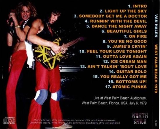 セカンド・アルバム「VAN HALEN II」 発表後の全米ツアー」より1979年7月6日のフロリダ州ウェスト・パーム・ビーチ公演がステレオ・サウンドボード収録で初登場!これまで一切出回っていなかったこの日のライヴを音質最高のステレオ・サウンドボードで、ドラム、ベース・ソロ以外1CDギリギリ79分以上に渡り完全収録。近年この年のサウンドボード音源がいくつかリリースされましたが、いずれもアナログ・ブートが元だったのに対し今回マスターからデジタル・クローンで収録した文句無しのアイテムで、このセカンド・アルバムからのツアーから新たな決定版音源がプレスCDで待望の登場です!