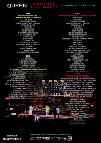 クイーン究極のアルバム徹底研究シリーズ”エクスパンデッド・コレクターズ・エディション”としてライブ・アルバム『LIVE MAGIC』がオリジナルの内容を拡張した最新コレクターズ・エディション『ANOTHER LIVE MAIGIC』として登場!フレディ・マーキュリー生前最後のライブとなった86年ネブワース公演や冷戦中のハンガリー・ブダペスト公演といった歴史的ライブからハイライト収録したオリジナル・アルバムですがハンガリー・ブダペスト公演は後に単独で公式リリースされたもののその映像は編集され数曲未収録の不完全な内容でした。CDの方には当時放送用に収録されたオリジナル音源をCD化。現在音源に関しては全曲収録されたリマスターCDがありますがここではリマスター以前のオリジナル音源を収録。フレディのボーカルや楽器の分離がよりクリアに聞こえるオルタネイト・ミックスとして聴き比べるとその違いが判ります。後半にはオリジナルUKアナログ音源によるライブ・アルバム『LIVE MAGIC』を完全収録。こちらもリマスターされていないオリジナル音源ということに加え当時収録時間の都合で一部エディット・バージョンで収録されている点もポイントです。DVD1にはハンガリー・ブダペスト公演を全曲完全収録したコンプリート・バージョンを収録。映像作品ではドキュメンタリーを挟んで編集され数曲未収録でしたがその映像パートを編集前のフィルム映像で再現。現在そのオリジナル・フィルムは破棄されたとされており現時点では画質劣化したフィルム映像しかありませんがその貴重な断片をパッチして全曲完全版に仕上げています。ドキュメンタリー無しでコンサート全曲収録しておりどの部分が編集でカットされたかが見ていて判るコンプリート・バージョンとなっています。DVD2には88年当時リリースされたオリジナル・ビデオ・バージョンを収録。2012年のリマスターではワイド・スクリーンに編集されましたがここでは当時の4:3スタンダードの画面上下がトリミングされていないアンカット・オリジナル映像を見ることが出来ます。また音源もリマスター以前のオリジナル・ステレオとなっており現在では入手困難となったビデオ・バージョンとしてコレクターは見逃せません。さらにエクストラ映像として当時の現地TVニュースやコンプリート・バージョンではカットされたドキュメンタリーも含め現存する関連映像がまとめられています。これまで同様アルバムをマニアックに深堀りした”究極のアルバム徹底研究シリーズ”