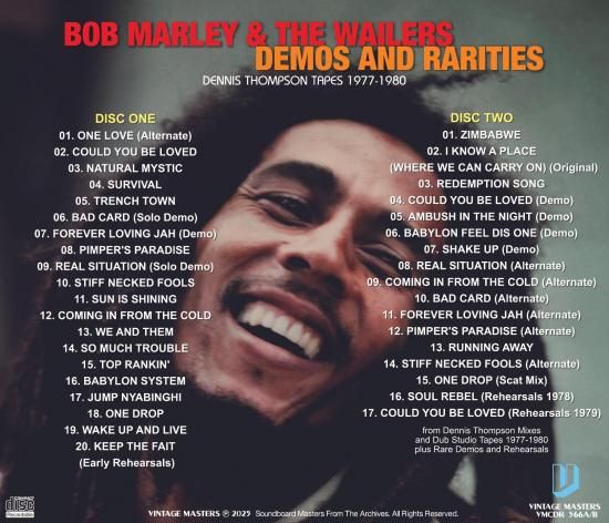 ボブ・マーリー&ザ・ウェイラーズ全盛期の貴重な音源が集められたコンピレーション『デモ・アンド・レアリティーズ:デニス・トンプソン・テープス1977〜1980』が登場!ボブ・マーリーの側近であったエンジニア、デニス・トンプソン所有の未発表音源をまとめたものでその多くが未発表のデモやリハーサルさらに独自のダブ・ミックスやリミックス・バージョン等となっています。音質クオリティに多少のバラつきがあるものの、以前から知られた音源含め曲数も増補改訂されアップグレード・クオリティーの音源を中心に収録された大推薦のコレクター必聴レアリティーズ・コレクションです!!