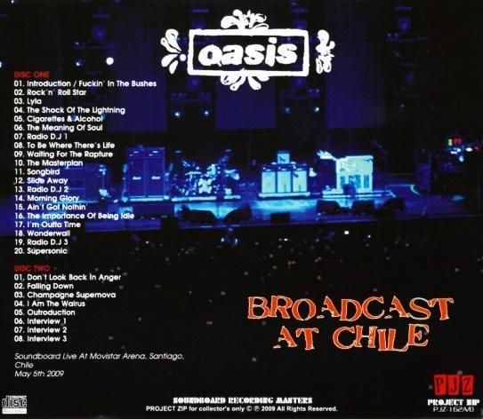 01. Introduction / Fuckin’ In The Bushes/02. Rock’n’ Roll Star/03. Lyla/04. The Shock Of The Lightning/05. Cigarettes & Alcohol/06. The Meaning Of Soul / 07. Radio D.J 1/08. To Be Where There’s Life/09. Waiting For The Rapture/10. The Masterplan/11. Songbird/12. Slide Away/13. Radio D.J 2/14. Morning Glory / 15. Ain’t Got Nothin’/16. The Importance Of Being Idle/17. I’m Outta Time/18. Wonderwall/19. Radio D.J 3/20. Supersonic