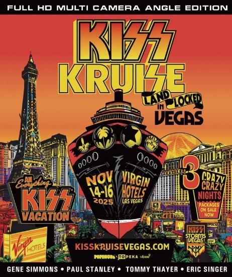 今年2025年11月14〜16日ラスヴェガス、ヴァージョン・ホテルで行われたKISS Kruise: Landlocked in Vegasから14日のアコースティック・ショウ、15日のエレクトリック・ショウの映像が共にマルチ・カメラ・アングル完全収録で早くも登場!2023年12月2日にニューヨークのマディソン・スクエア・ガーデンで幕を閉じたEND OF THE ROADツアー以来バンド初パフォーマンスで、初日14日は先月亡くなったエース・フレーリーの追悼から野外イベント会場でのアコースティック・ショウ、15日はホテル内での会場でのエレクトリック・ショウでラスト2曲にブルース・キューリックが飛び入り参加しており、これまでのKISSKRUISE同様の特別な内容となっております。両日共に多数のフルHDカメラ・ショットから巧みに編集したマルチ・アングルの映像に音質も素晴らしく殆どプロ・ショットとも言っても過言ではないクオリティで最後までストレス無しに十分楽しめる事が出来ます。更にはVIPチケットの限られたファンのみに公開された15日のサウンドチェックから4曲までも(こちらのみワン・カメ)収録しており、今年唯一でツアー引退後初となるスペシャル・ステージを究極の状態で収録したファン必携アイテムです!