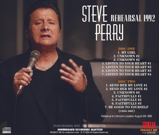70年代〜80年代全盛期ジャーニーのヴォーカリスト、スティーブ・ペリー1992年の貴重なスタジオ・リハーサル音源が初登場!ジェフ・ベックやロッド・スチュワートはじめ数多くのセッションやツアー・バンドの参加で知られるベーシスト、フィル・チェン死去後のアーカイブから発見されたスタジオ・リハーサル音源をやや歪み気味ながらステレオ・サウンドボードで約90分に渡り収録。ペリーがジャーニー脱退後の94年にリリースしたソロ・アルバム『ストレンジ・メディスン』に先駆けて行なわれたセッション